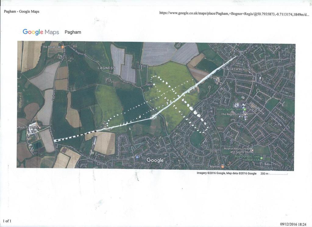 Another defensive measure put in place at the same time as the pillbox was the anti-tank ditch. About 2.4 metres deep a ditch was dug from North of Chalcraft Lane, through the Copthorne Caravan Park site, running along the Northern edge of the Taylor Wimpey site and then near Sefter School. Another local resident Dick Clinch also added his memories and detail on this. " The western end was just North of the junction of Pagham Road and Sefter Road and on the other side of Pagham road there was a drainage ditch which ran south for a short distance before turning West and presumably drained into Pagham Rife. The Eastern end stopped just short of the Royal Oak (Pink Pub) in North Bersted. It was probably slightly curved along its length rather than turning sharply as shown on the attached maps.(( Albert Homer interjects here and states that he (Dick) may have been unaware that apparently it went all the way to the Aldingbourne Rife as it says in Sylvia Endecot's book "It Started with a Map!". She also says something like "it snaked", so it wasn't anything like the straight lines I drew on the map! )) It was dug by a dragline with a huge bucket Dick remembers, and would have been done in late 1940 or early 1941 when preparations were underway to repel what was thought to be an imminent German invasion. In 1944 when the Advanced Landing Ground at Chalcraft Lane was constructed some parts of it would have been filled in. In 1947 when the Urban District Council filled in the rest of the ditch the section from Sefter Road to Robin Dean's place (the last house in Sefter Road according to Dick) was used to lay in a 39 inch pipe . Dick and a friend actually walked along the length of it inside this pipe.."